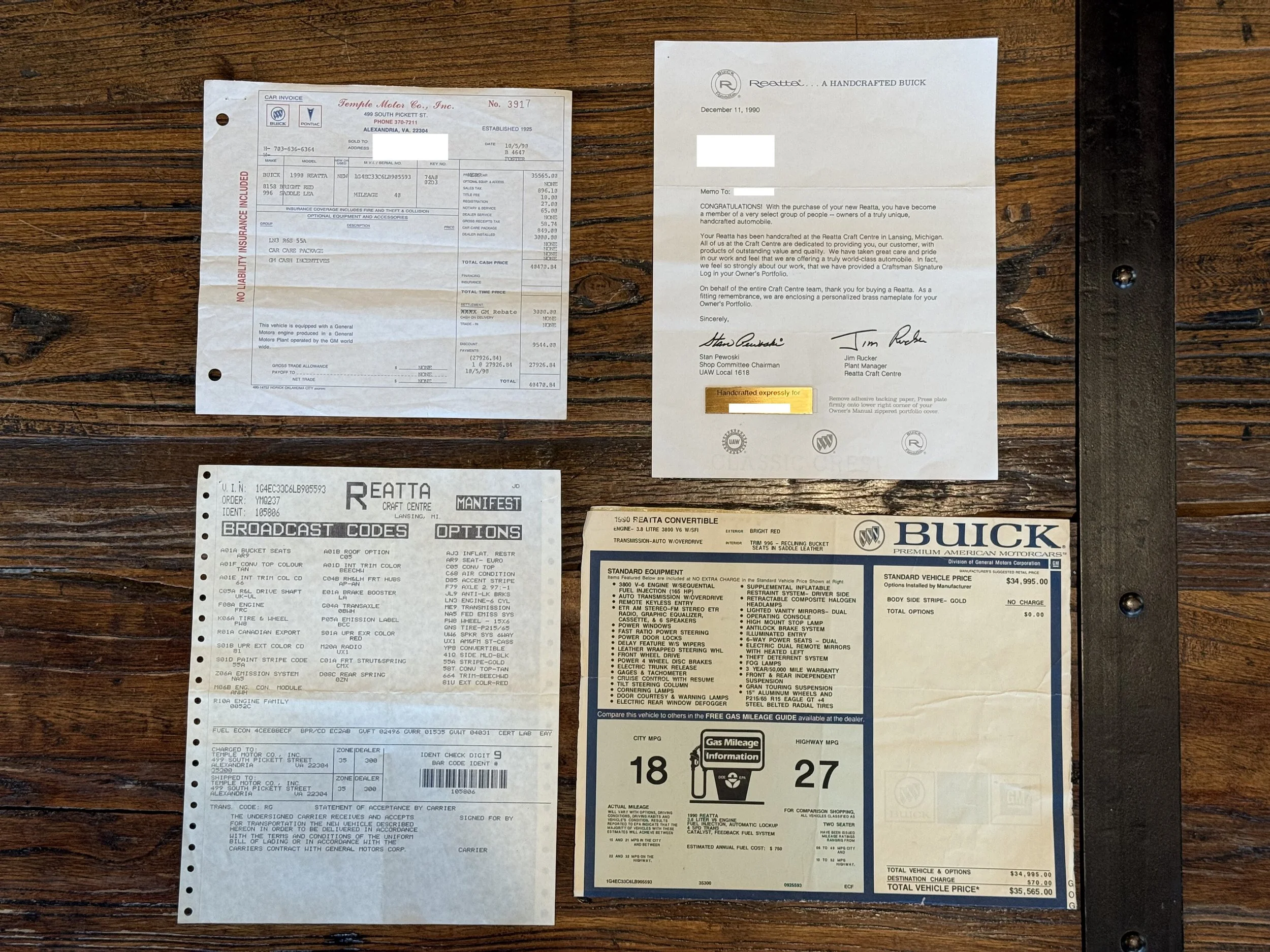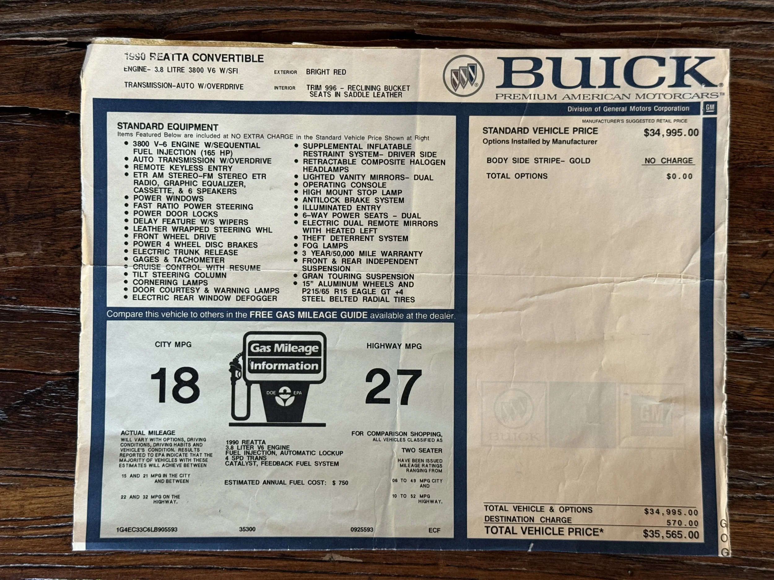 - Original Window Sticker and documentation